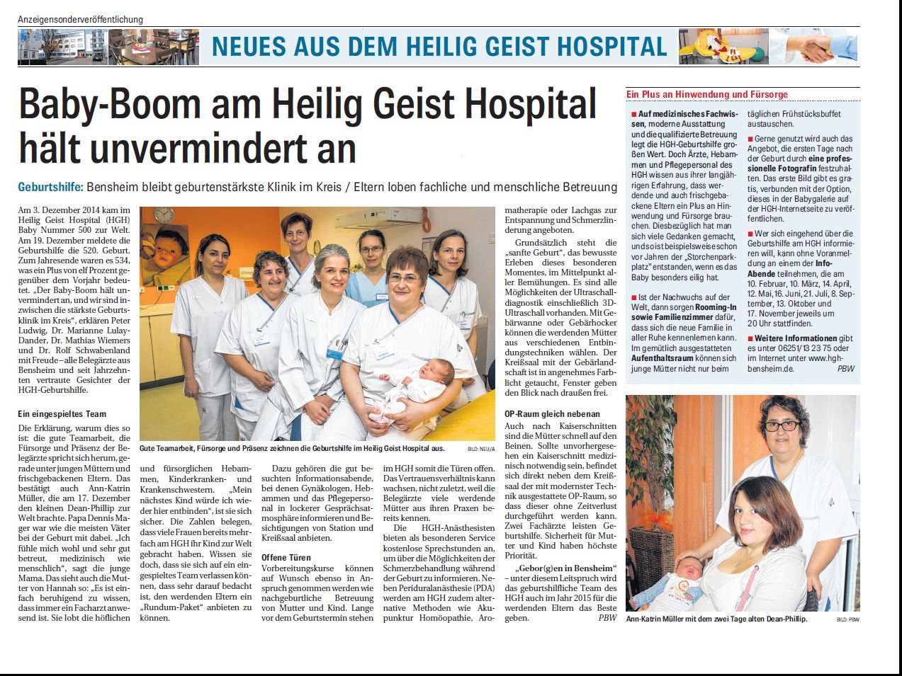 Am letzten Wochenende war im Kreissaal des Heilig-Geist Hospitals Hochbetrieb: Allein Frauenarzt Peter Ludwig brachte von Freitag, 8. September bis Sonntag, 10. September 14 Kinder zur Welt. Mit derzeit 451 Geburten im Jahr 2017 ist die Geburtsmedizin in Bensheim gefragt wie nie zuvor.